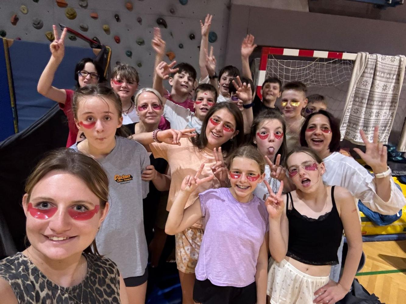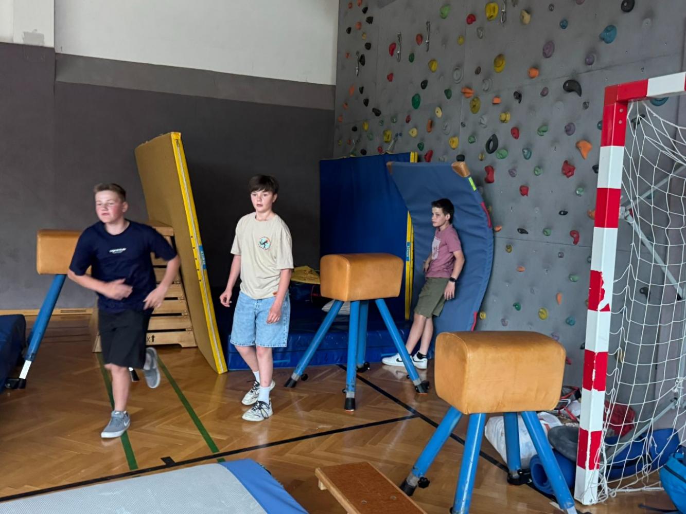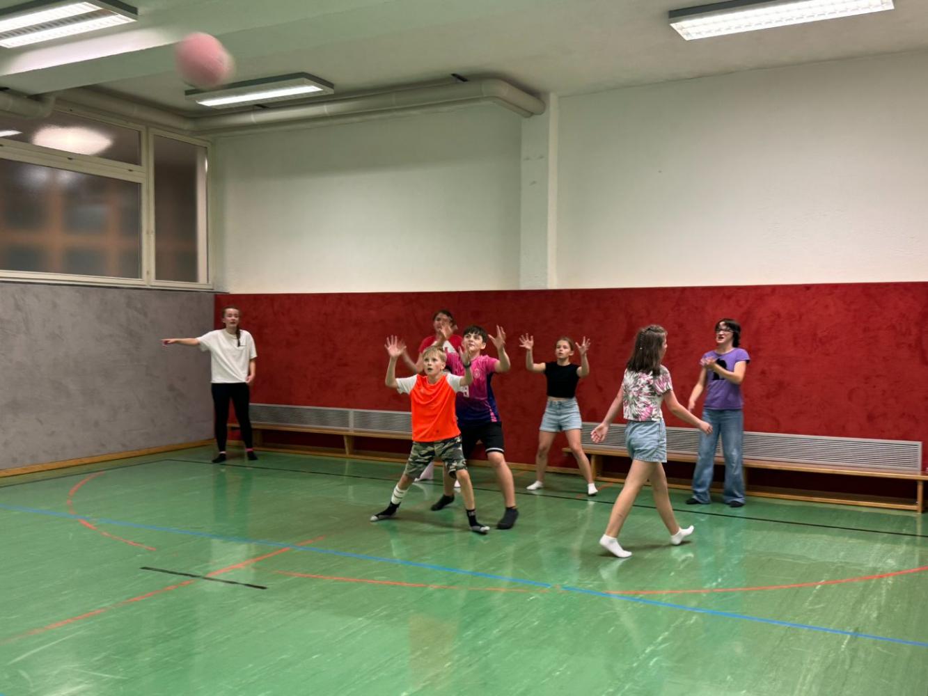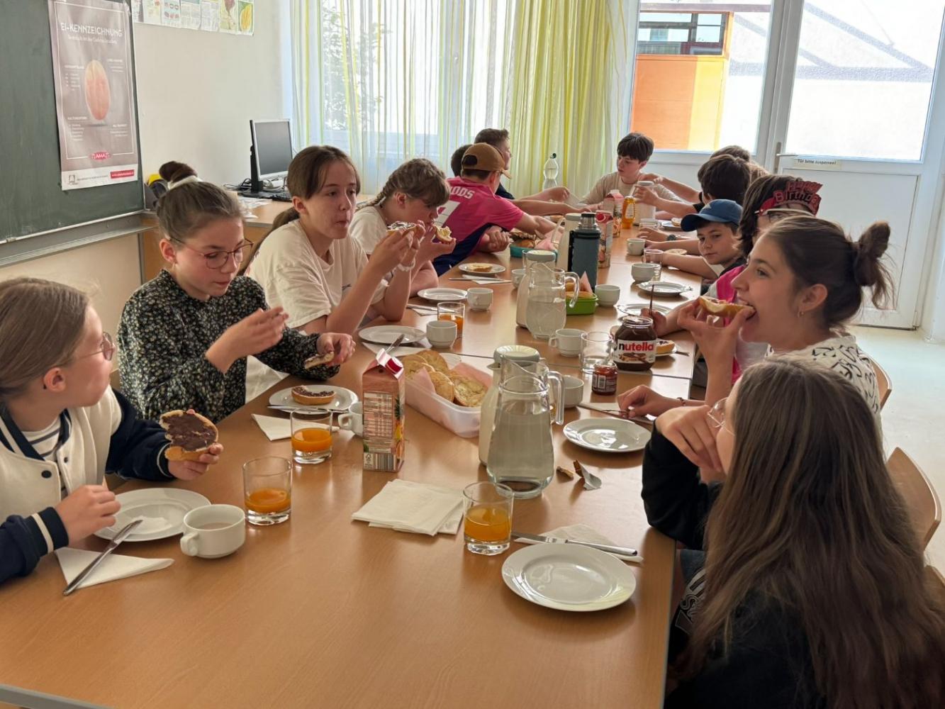 Als Erstes wurden die Schlafgelegenheiten im Turnsaal hergerichtet, bevor sich die Jungs und Mädels in der Schulküche versammelten, um sich für die nächsten Aufgaben mit Hot Dogs zu stärken. Damit die Schulveranstaltung den Titel „Lesenacht“ auch verdiente, mussten verschiedene Aufgaben bei einer Actionbound-Tour mit Stirnlampe gelöst werden. Dabei kam der Spaß natürlich nicht zu kurz, denn die Schülerinnen und Schüler sollten unter anderem unser Schulskelett im gruseligen Dachboden suchen, ein merkwürdiges, grünes Getränk kosten, eine Sequenz aus „Thriller“ nachtanzen und vieles mehr. Danach wurde im Turnsaal noch bei Discolicht und cooler Musik „abgedanced“. Um Mitternacht feierten wir dann in den Geburtstag unserer Franzi hinein. Die ganze Klasse gratulierte ihr pünktlich um 00:00 Uhr mit Kuchen und Geschenke. Bevor es dann ins Bett ging, spielten wir noch eine Runde Stirnlampen-Völkerball. Nach einer kurzen Schlafphase hieß es um 06:00 Uhr schon wieder Tagwache. Zügig wurden die Schlaflager wieder abgebaut und die Schülerinnen und Schüler genossen noch ein leckeres Frühstück von unserer Elternvertreterin Dominique - ein großes Dankeschön dafür! Etwas übermüdet, aber mit vielen lustigen Eindrücken ging es dann für alle in das wohlverdiente lange Wochenende.