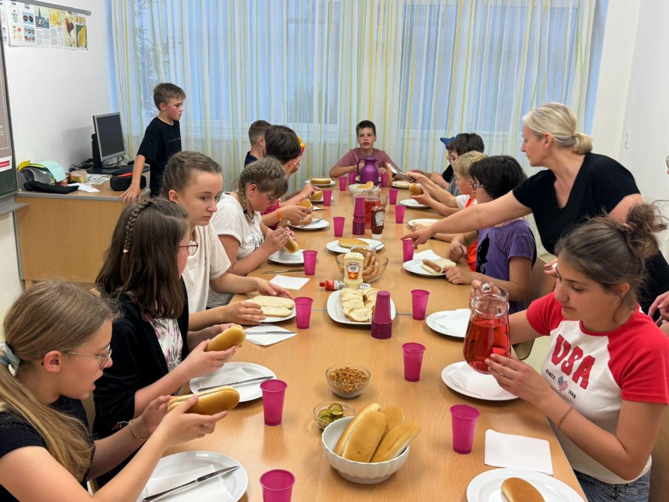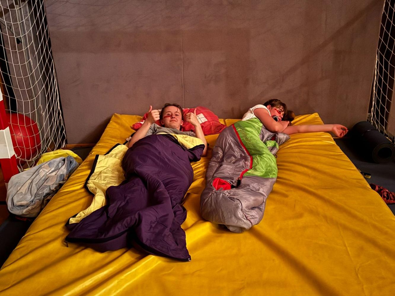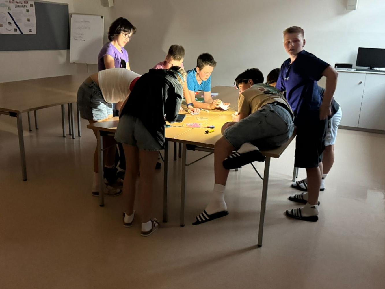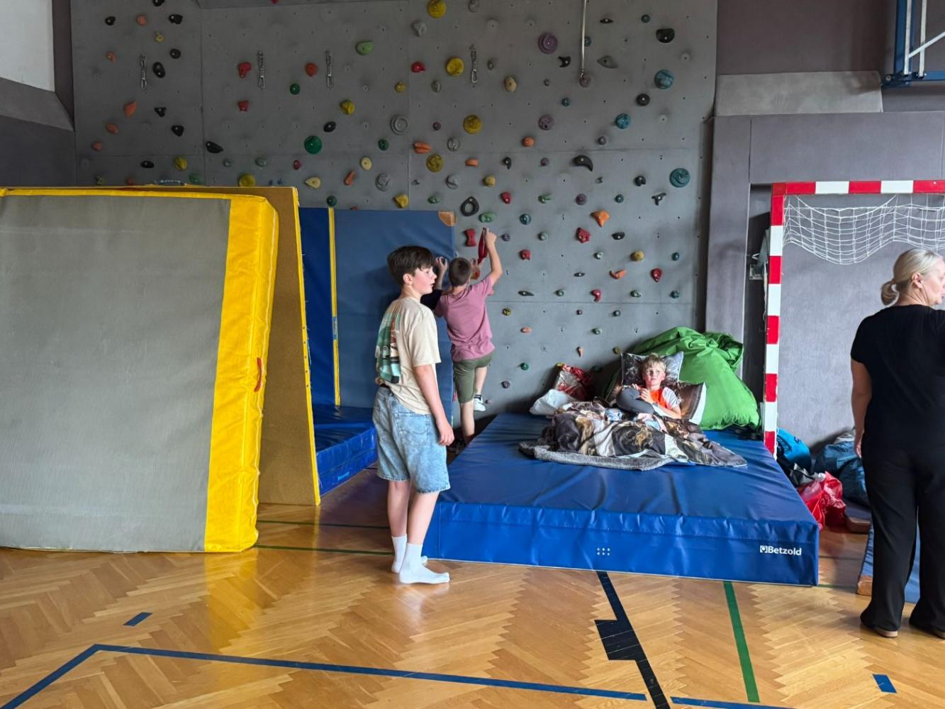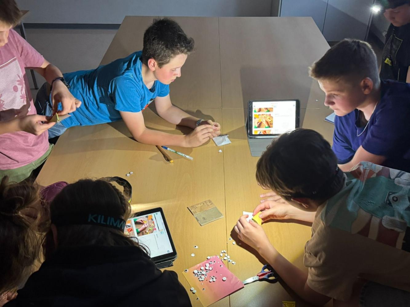 Als Erstes wurden die Schlafgelegenheiten im Turnsaal hergerichtet, bevor sich die Jungs und Mädels in der Schulküche versammelten, um sich für die nächsten Aufgaben mit Hot Dogs zu stärken. Damit die Schulveranstaltung den Titel „Lesenacht“ auch verdiente, mussten verschiedene Aufgaben bei einer Actionbound-Tour mit Stirnlampe gelöst werden. Dabei kam der Spaß natürlich nicht zu kurz, denn die Schülerinnen und Schüler sollten unter anderem unser Schulskelett im gruseligen Dachboden suchen, ein merkwürdiges, grünes Getränk kosten, eine Sequenz aus „Thriller“ nachtanzen und vieles mehr. Danach wurde im Turnsaal noch bei Discolicht und cooler Musik „abgedanced“. Um Mitternacht feierten wir dann in den Geburtstag unserer Franzi hinein. Die ganze Klasse gratulierte ihr pünktlich um 00:00 Uhr mit Kuchen und Geschenke. Bevor es dann ins Bett ging, spielten wir noch eine Runde Stirnlampen-Völkerball. Nach einer kurzen Schlafphase hieß es um 06:00 Uhr schon wieder Tagwache. Zügig wurden die Schlaflager wieder abgebaut und die Schülerinnen und Schüler genossen noch ein leckeres Frühstück von unserer Elternvertreterin Dominique - ein großes Dankeschön dafür! Etwas übermüdet, aber mit vielen lustigen Eindrücken ging es dann für alle in das wohlverdiente lange Wochenende.