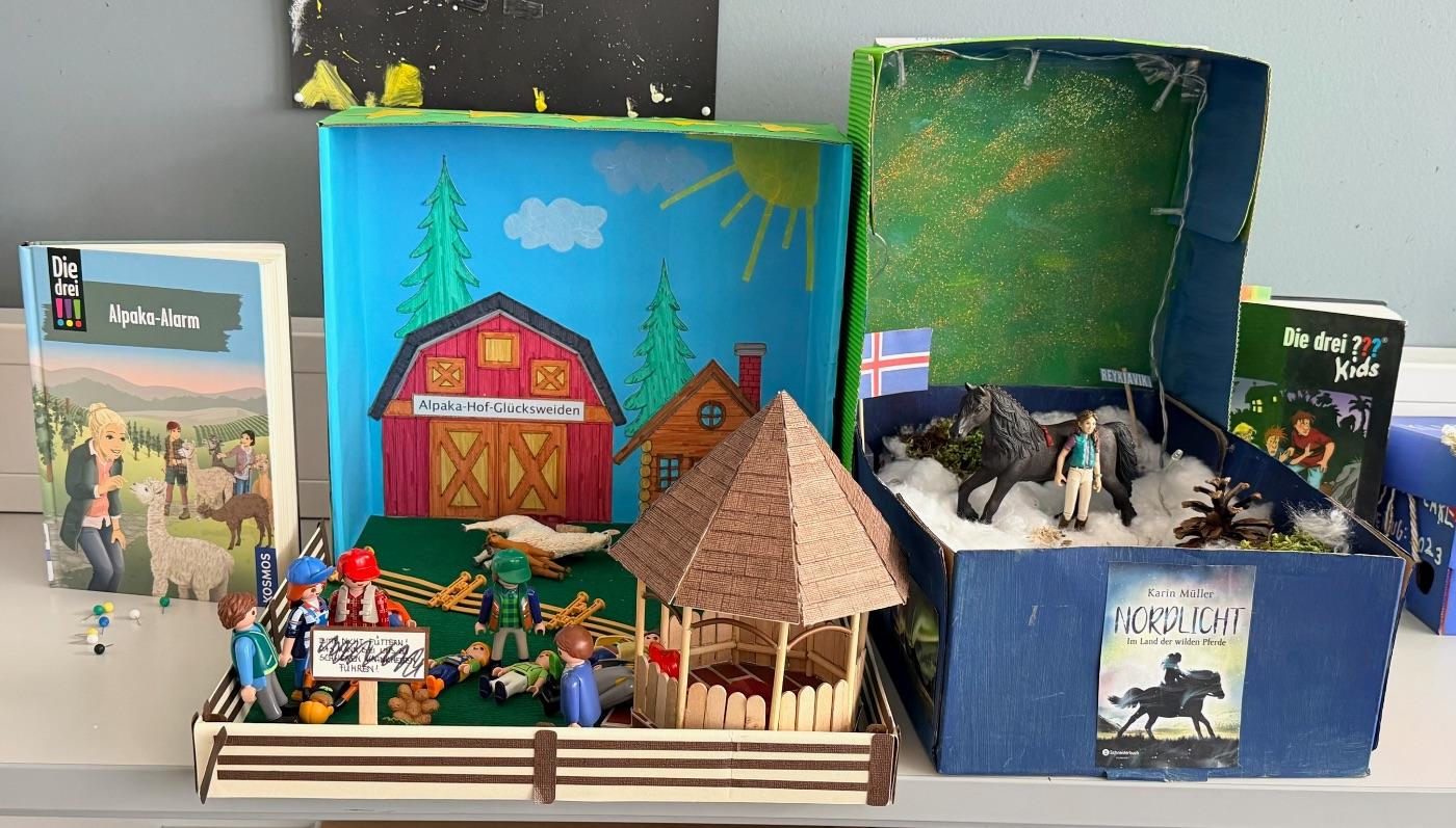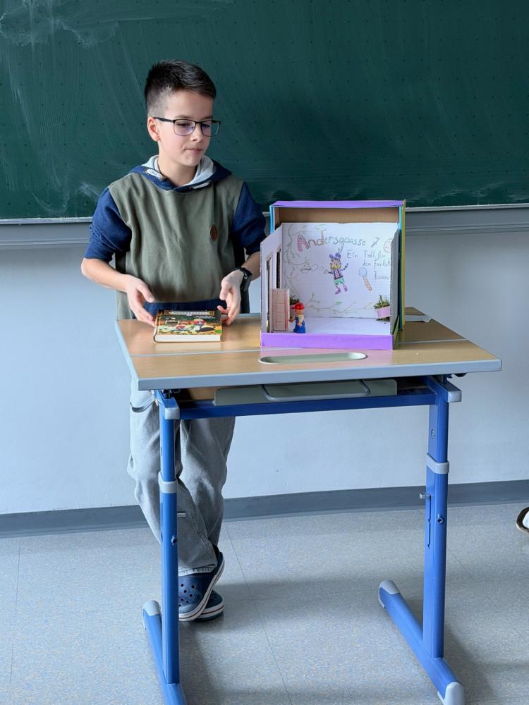 Der Jänner stand im Deutschunterricht der 2. Klassen ganz im Zeichen des Lesens. Die Schülerinnen und Schüler ließen ihrer Kreativität freien Lauf und stellten mit ihren Bücherboxen ihre Lieblingswerke vor. Lichterketten, selbstgebastelte Pappfiguren, Legomännchen, Teile aus dem 3D-Drucker und vieles mehr wurden genutzt, um die Schachteln zu den Büchern zu gestalten. Bei den Buchvorstellungen präsentierten die Schülerinnen und Schüler ihre Kunstwerke und übten gleichzeitig das Sprechen vor Publikum.