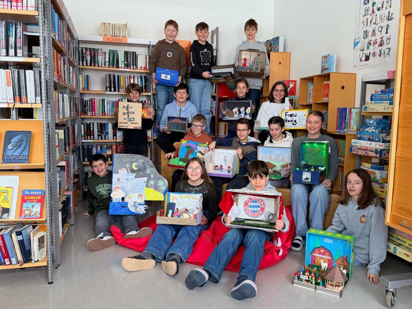 Unsere 2. Klassen verwandelten einfache Schuhkartons in zauberhafte Bücherboxen, die neugierig auf das Lesen machen.