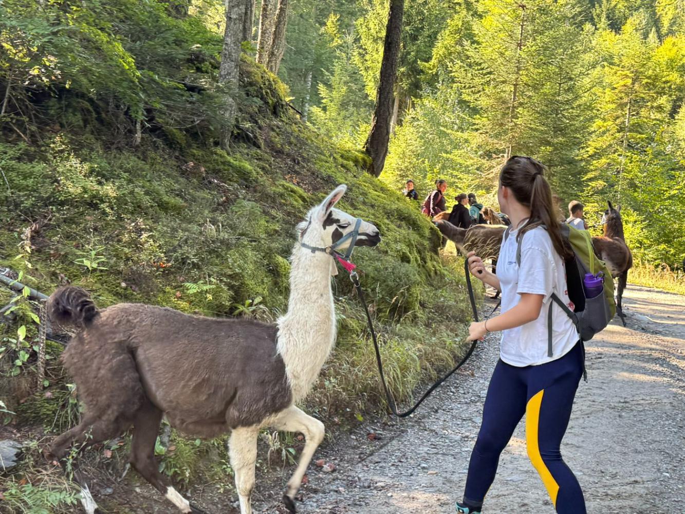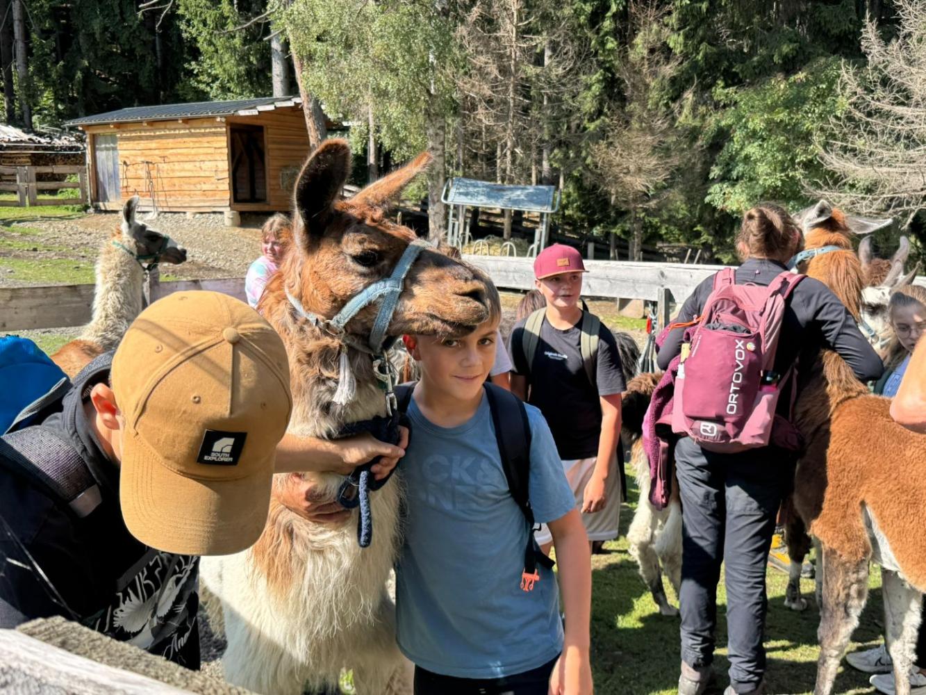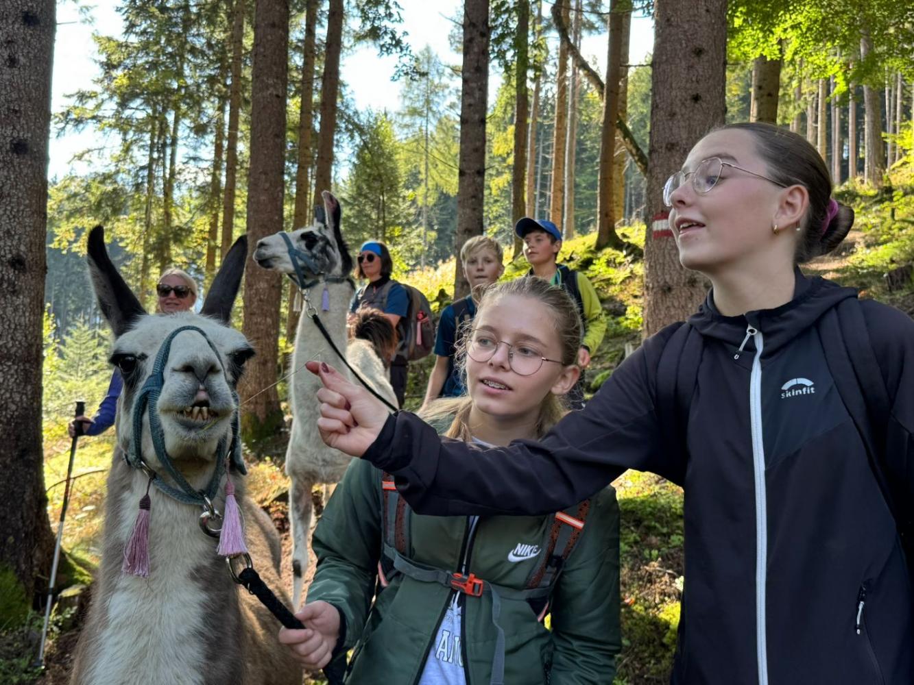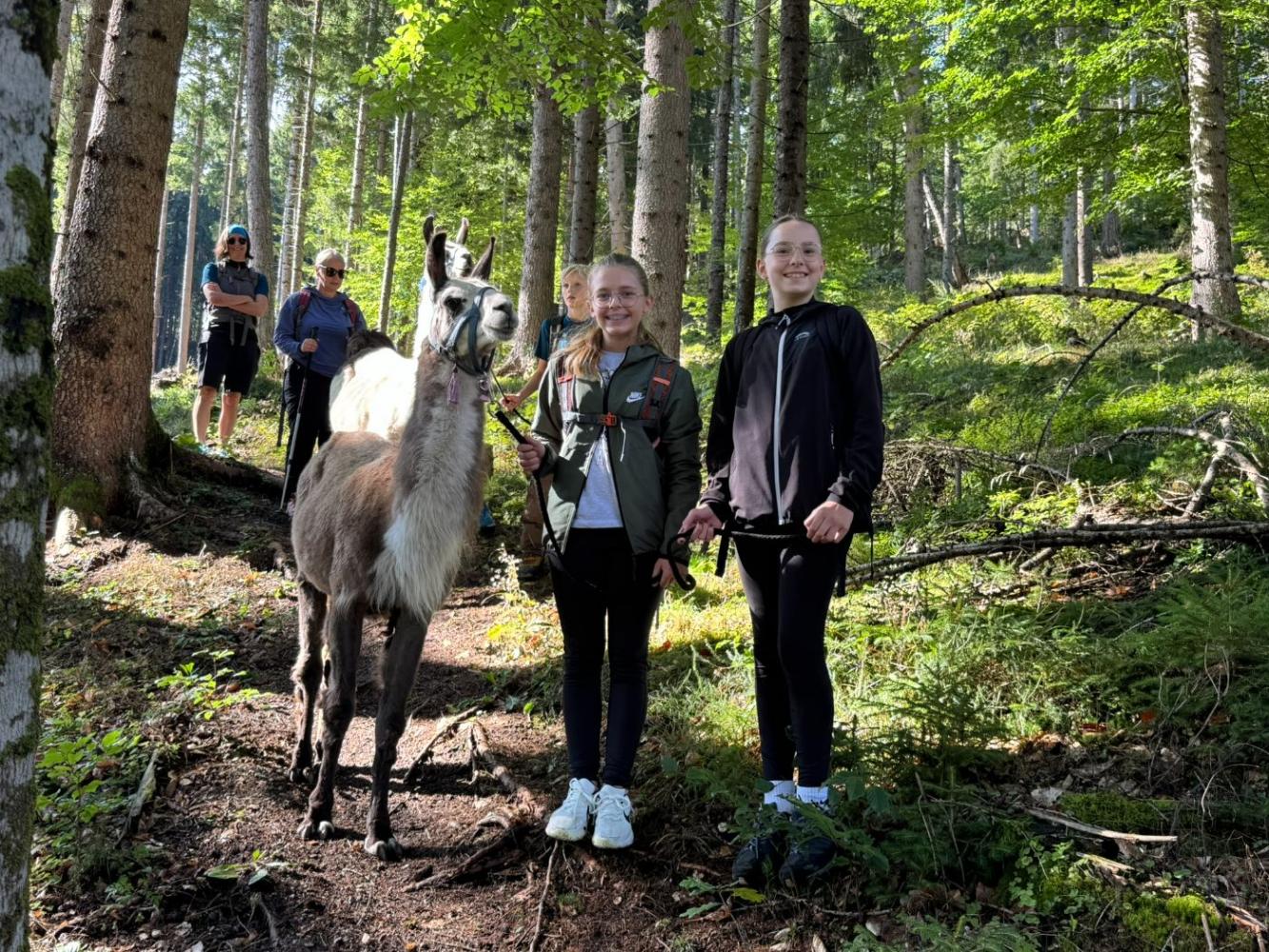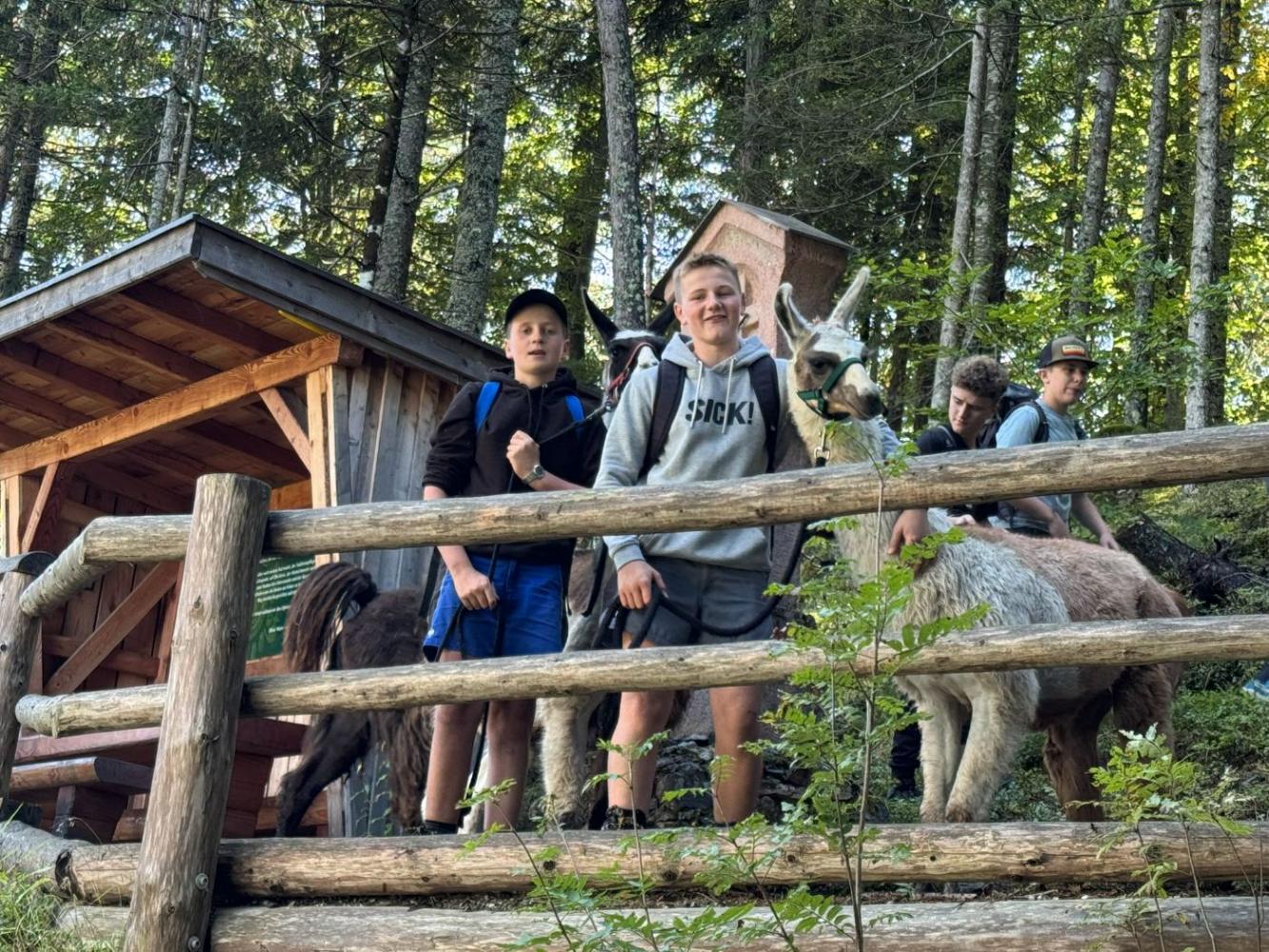 Die 3. Klassen starteten das heurige Schuljahr mit einem besonderen Ausflug, der sowohl die Teamarbeit innerhalb der Klassen als auch das Verantwortungsbewusstsein gegenüber Tieren stärken sollte. Mit dem Bus ging es nach Lienz, von wo die Schülerinnen und Schüler auf die Moosalm wanderten. Oben warteten schon zehn Lamas auf eine Wanderung. Nach einer kurzen Einschulung und einigen interessanten Informationen über die Tiere wurden die Lamas von den Schülerinnen und Schülern gehalftert und zu einem ausgiebigen Spaziergang ausgeführt. Sowohl die Kinder als auch die Lamas hatten dabei sichtlich Spaß und der anfängliche Respekt war bereits nach ein paar Metern verschwunden. Zum Abschluss machten die Schülerinnen und Schüler noch mit ihren Lamas ein kleines Wettrennen, bevor sie sich schweren Herzens wieder von ihnen verabschiedeten.