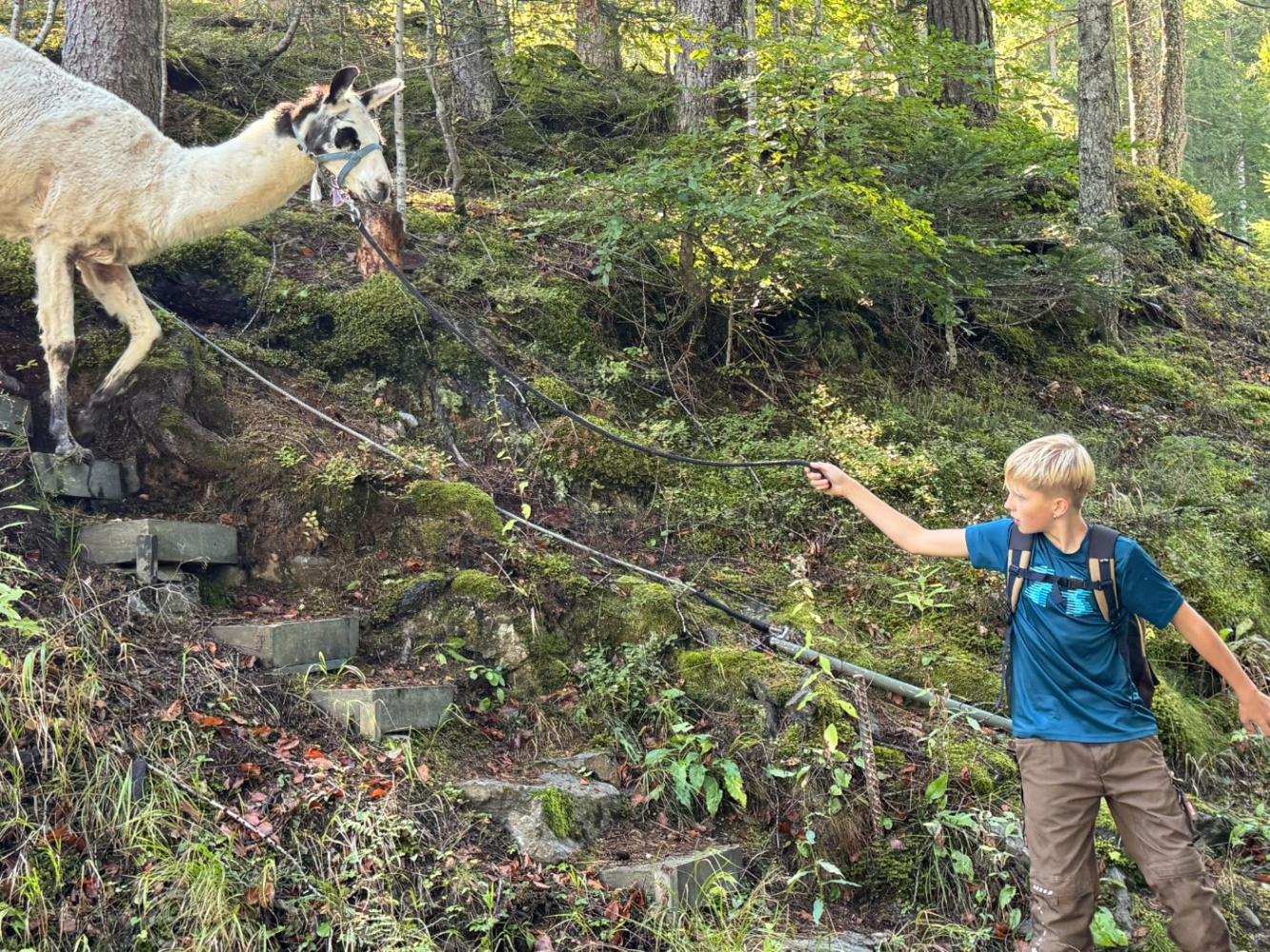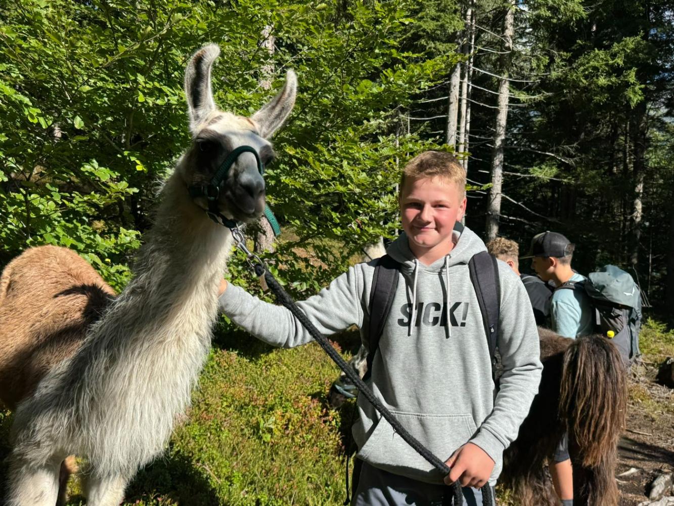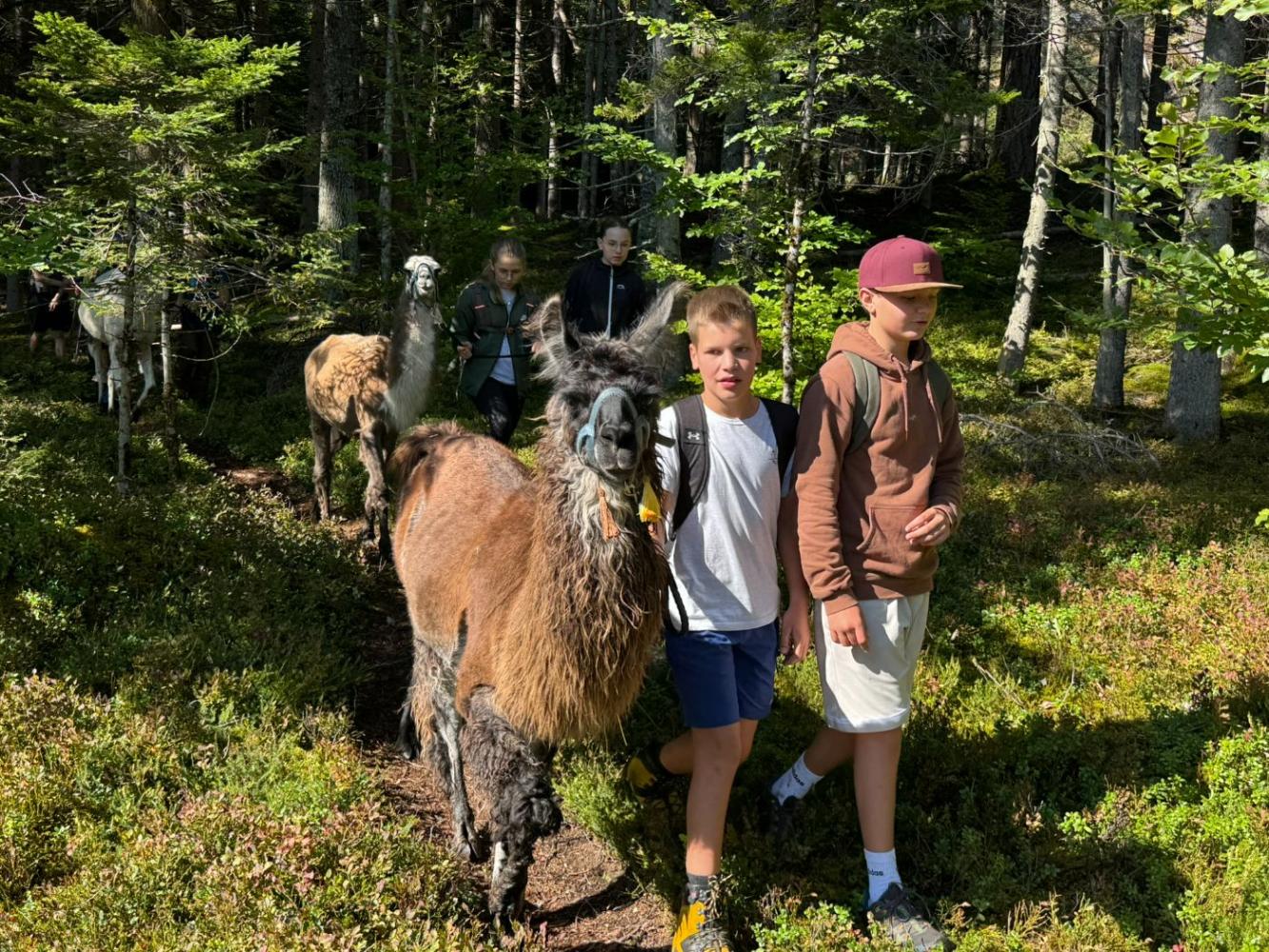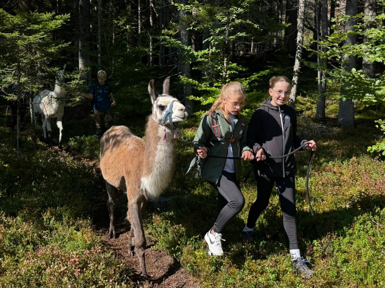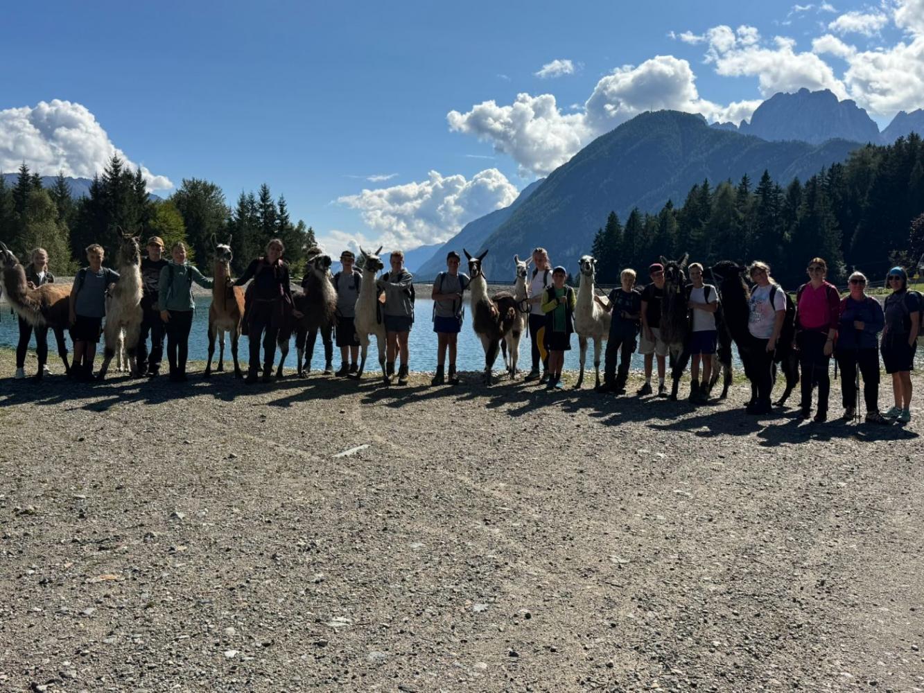 Die 3. Klassen starteten das heurige Schuljahr mit einem besonderen Ausflug, der sowohl die Teamarbeit innerhalb der Klassen als auch das Verantwortungsbewusstsein gegenüber Tieren stärken sollte. Mit dem Bus ging es nach Lienz, von wo die Schülerinnen und Schüler auf die Moosalm wanderten. Oben warteten schon zehn Lamas auf eine Wanderung. Nach einer kurzen Einschulung und einigen interessanten Informationen über die Tiere wurden die Lamas von den Schülerinnen und Schülern gehalftert und zu einem ausgiebigen Spaziergang ausgeführt. Sowohl die Kinder als auch die Lamas hatten dabei sichtlich Spaß und der anfängliche Respekt war bereits nach ein paar Metern verschwunden. Zum Abschluss machten die Schülerinnen und Schüler noch mit ihren Lamas ein kleines Wettrennen, bevor sie sich schweren Herzens wieder von ihnen verabschiedeten.